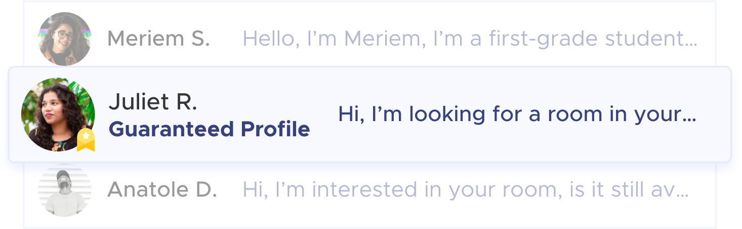 Priority visibility: Your Guaranteed Profile badge puts your message at the top of the landlord's inbox.